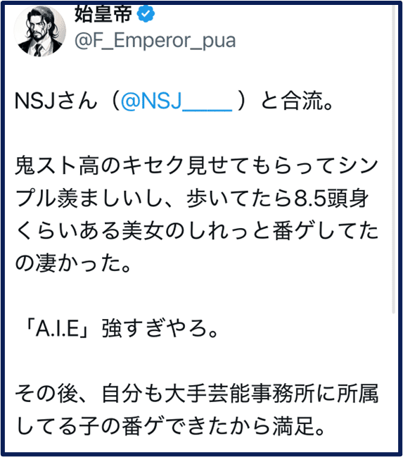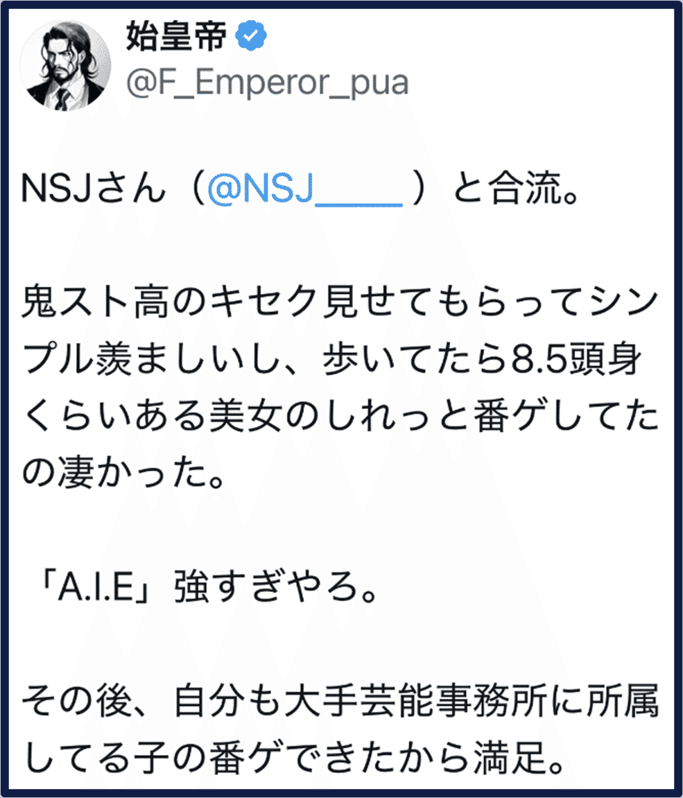 私が界隈入りした2019年から2022年頃までのTwitterは即画(即った女性の画像)が氾濫していた。しかし、法規制によりこの文化が死んだ瞬間、嘘つき業者がアメーバのように大増殖した。理由は単純で、証拠なしに「実績」をでっち上げやすくなったからだ。