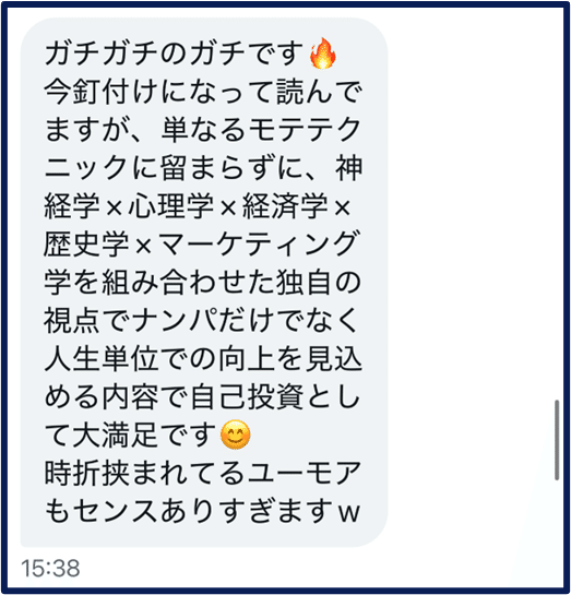 せっかく連絡先交換(番ゲ)した美女(案件)を、メッセージや電話のミスで喪失するのは非常にもったいない。初心者がやりがちなメッセージ/電話でのミスと、その対応策について解説している。また、食いつきがなくなってしまった案件を攻略したザオラル術(復活術)についての解説もある - NSJ流DaTalk(★★☆☆☆)