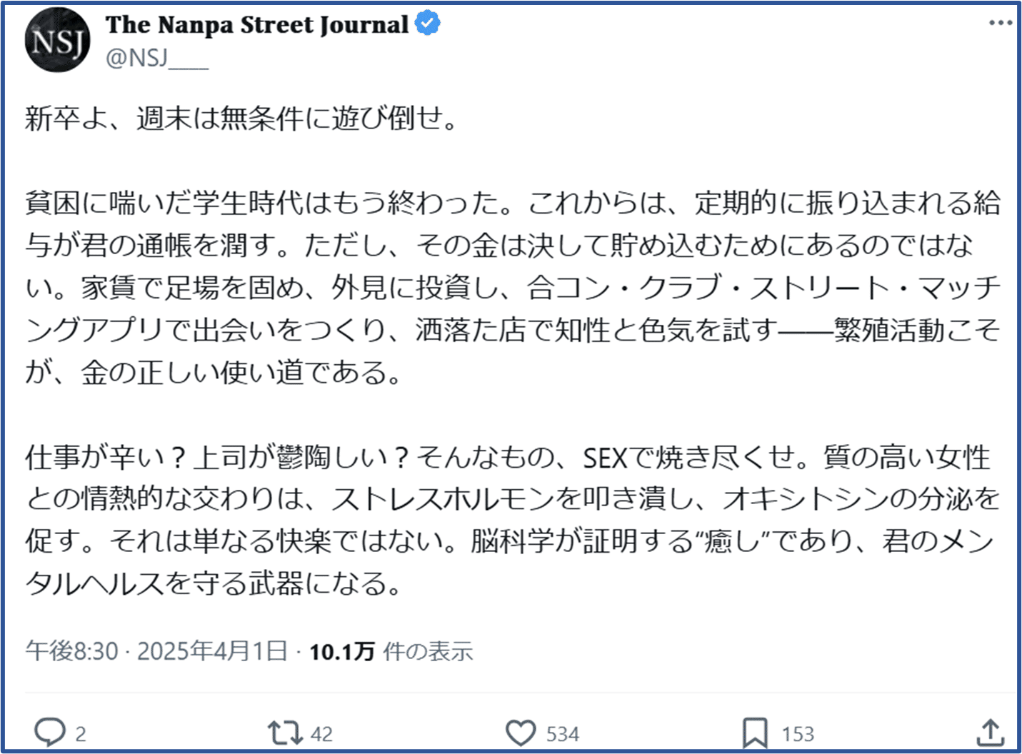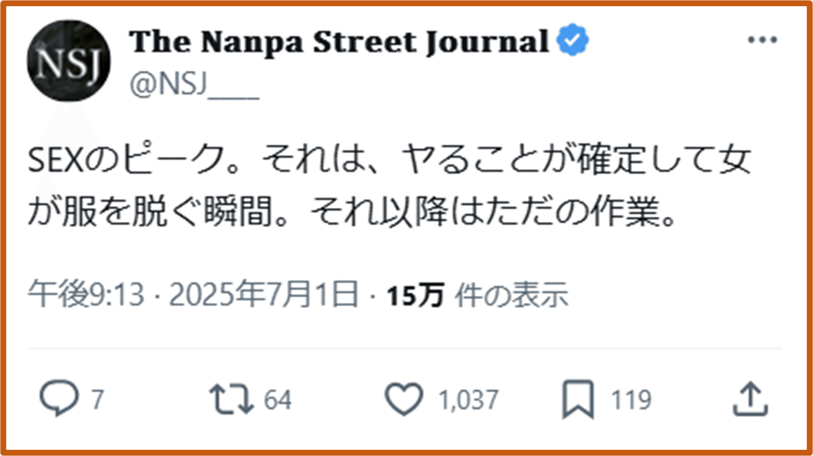 失敗の連続、傷跡のコレクション、それがNSJとしての履歴書である。だからこそ痛感する。修羅場を避け、現実の泥を踏まずに、スマホ一つで「●●即!」という実績を捏造してドヤ顔している連中の浅ましさを。