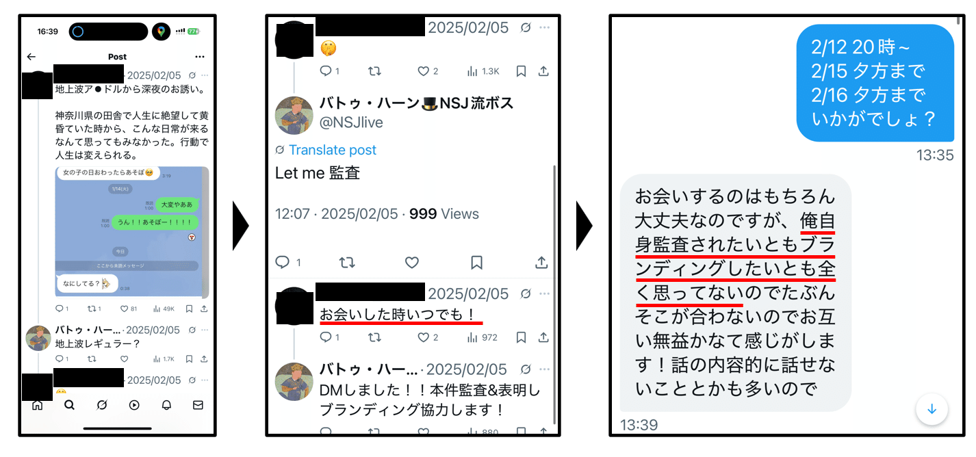 マネタイズしている人間にとってメリットのある「監査&表明」の連絡をしてみても、第三者から見えるところで「いつでもお受けします」スタンスなのに、いざDMすると色々イチャモンつけて拒否してくる人は信用しちゃいけない。